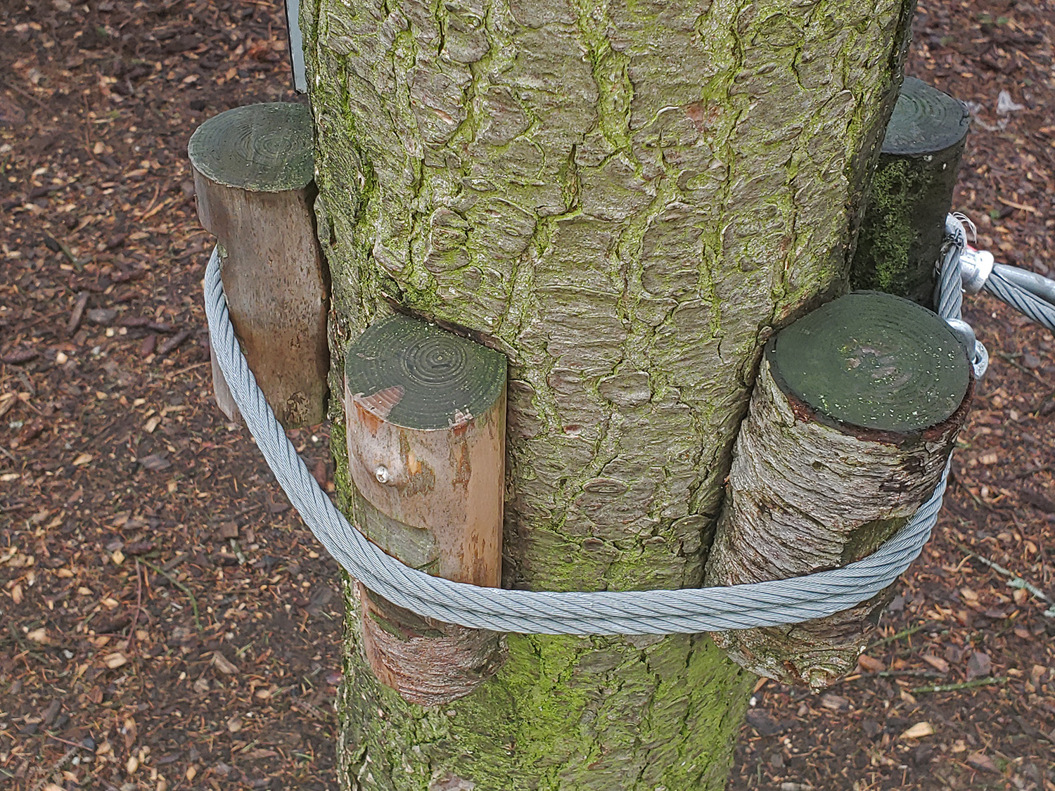 Maintenance du parc d'activités de loisirsDerniers préparatifs avant ouverture de la saisonEn période hivernale, les activités que nous proposons sont réduites, car l’ensemble des installations et plus particulièrement l’accrobranche nous impose des opérations de maintenance importantes, toutes ces opérations sont contrôlées annuellement par des organismes extérieurs : - contrôle technique ( lignes de vies, agrès) - contrôle phytosanitaire des arbres L’environnement de l’accrobranche est par nature dans les arbres, ces arbres sont des supports vivants que nous devons protéger, et nous adapter régulièrement à leur croissance. Protéger les arbres, c’est en priorité éviter le tassement des sols, pour cela nous laissons une période sans activité, et en saison nous maintenons un couvert végétal (branches broyées) sur les zones de circulation. S’adapter à la croissance des arbres est l’autre enjeu important, nos arbres sont principalement des résineux (pin Douglas), ils ont une croissance rapide (1 à 2 cm de diamètre par an). Chaque année nous devons faire les calages des câbles et plateformes pour éviter des contraintes sur la croissance des arbres. |
